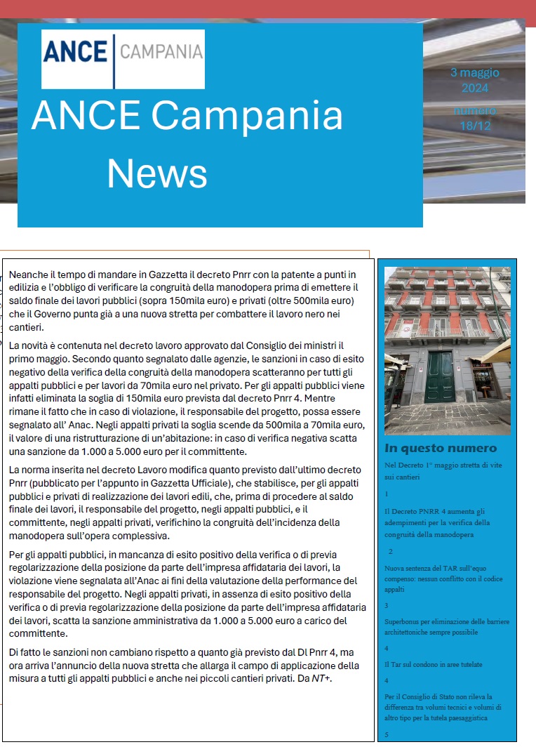 NEWS TECNICA N° 18 2024 Leggi l'articolo »
